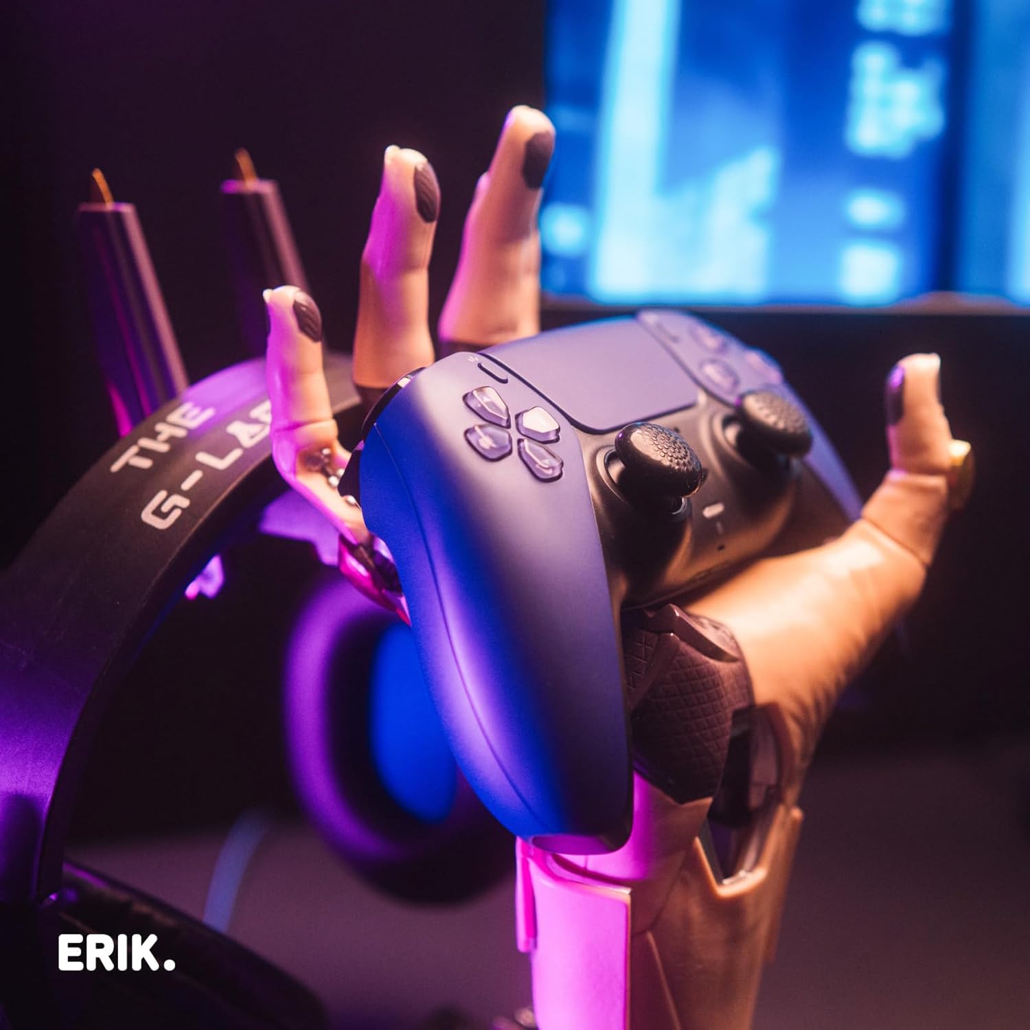 Crafted from durable resin and hand‑painted, this stand doesn’t just work well — it looks premium. It’s built to accommodate most major controllers (Xbox Series X/S, PS5, etc.) plus standard gaming headsets. Whether you’re streaming, gaming, or relaxing, it complements your setup while keeping clutter off your desk.